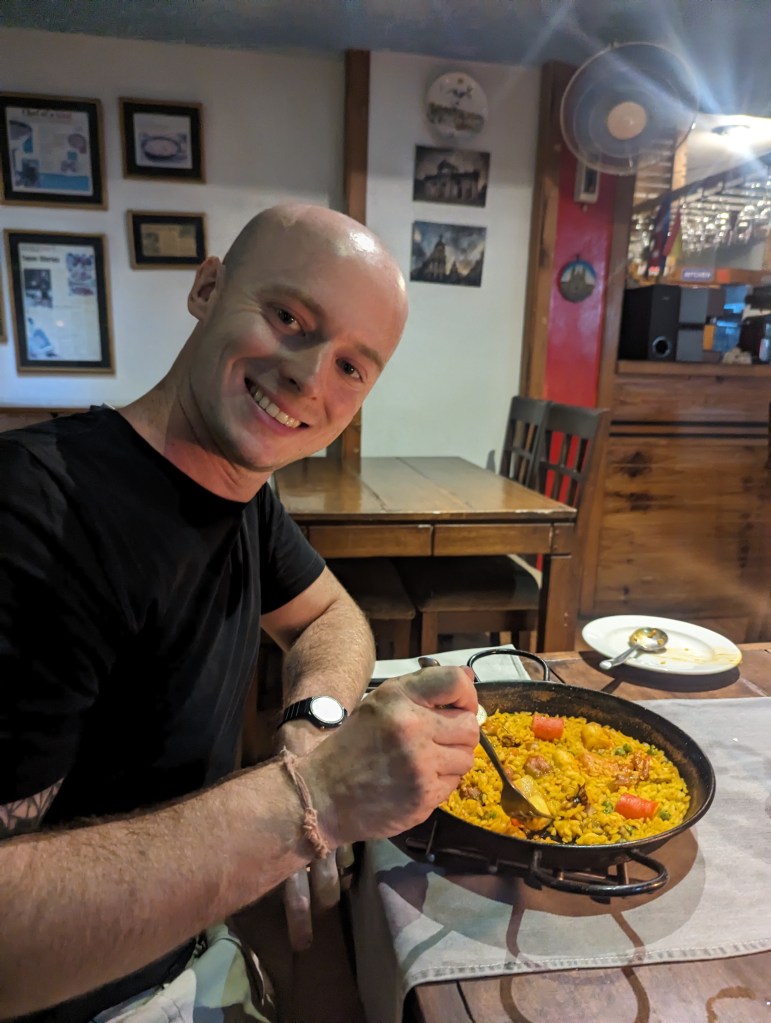 On the way home we had planned to get some dinner at a Spanish restaurant I’d seen recommended online. This again was completely deserted other than us which was a little off-putting, and we were also very concerned about the possibly small portion sizes from some of the photos, but these fears were misguided. We tucked into a delicious Spanish omelette, sangria and huge portions of paella each, eaten straight out of the pans they were made in. The owner gifted us dessert (possibly going off as clearly nobody else was coming tonight) and we left full, exercised and happy.