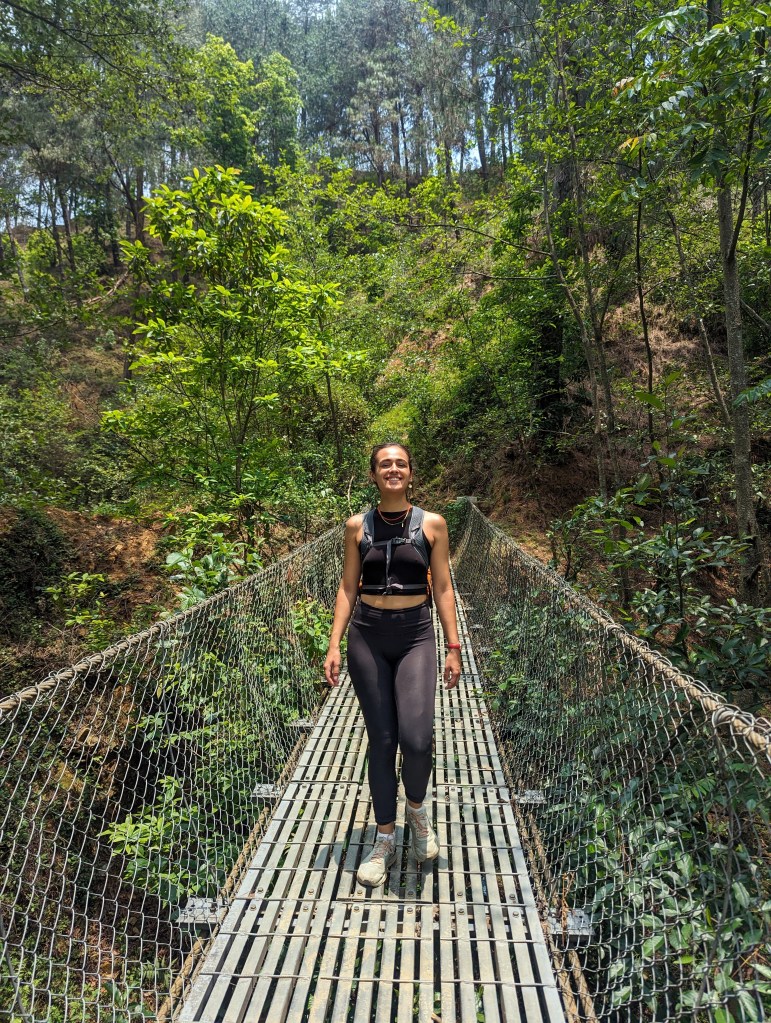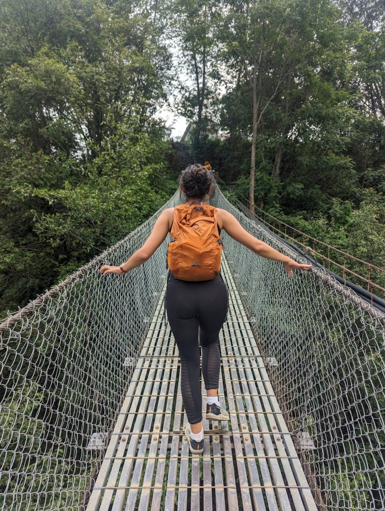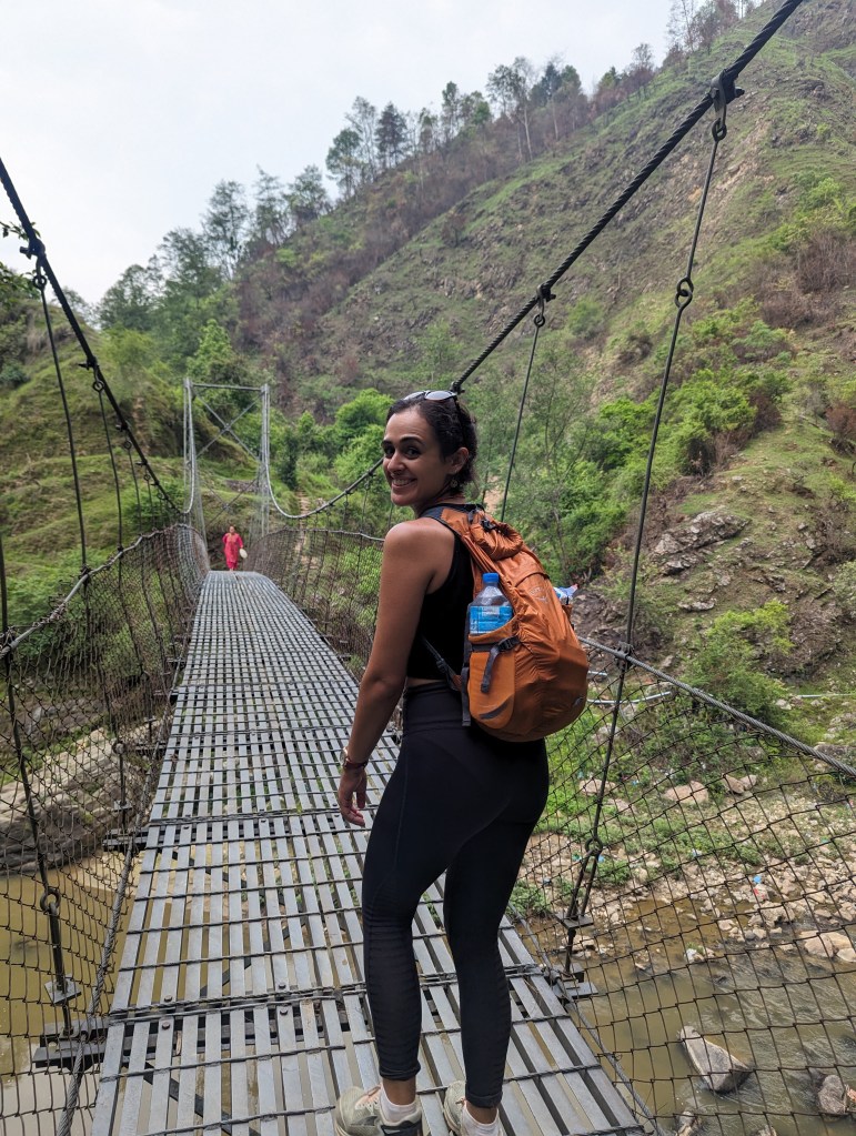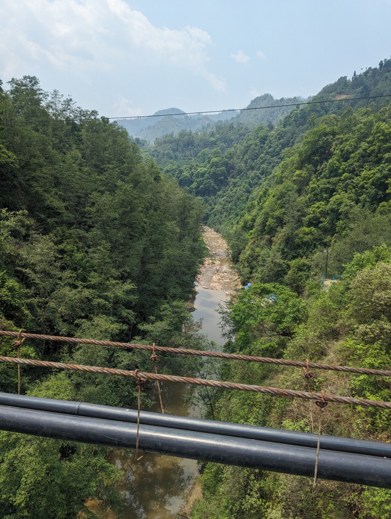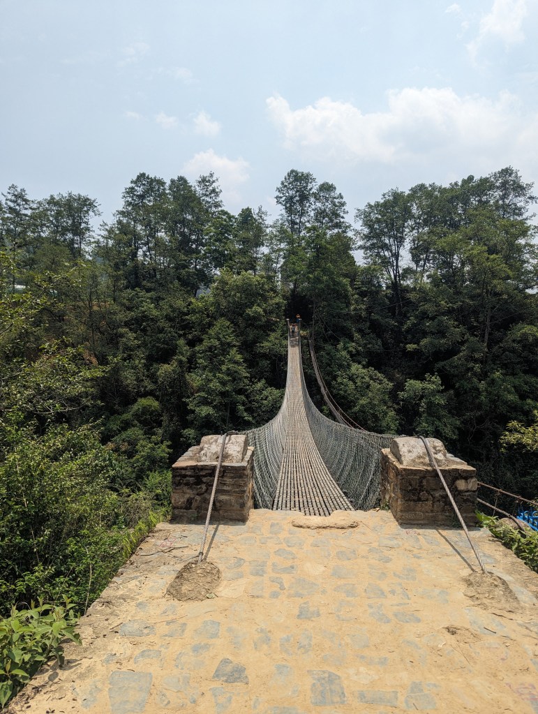 We bounced our way to Khopasi, and set out through the village on foot. Interestingly, even in the more rural Nepalese areas there was very little of the staring that was very common even in relatively touristy Indian cities, let alone in some of the more rural places we’d been to. On the outskirts of the village was a steel cable suspension footbridge over a deep gorge that rocked when you walked across it. Ellie in particular steeled herself (no pun intended) and we made our way across to the opposite bank. From here it was a relatively short and very scenic walk across another, much lower footbridge, and up the side of one of the smaller foothills to the neighbouring village of Balthali.