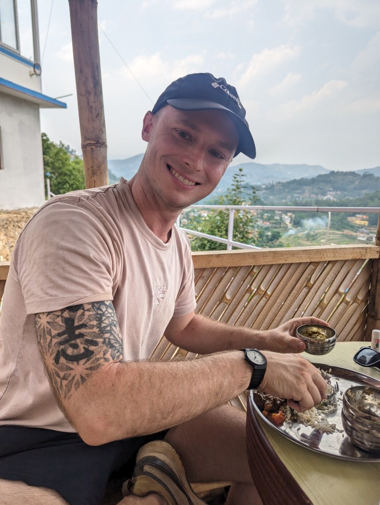 Given we had nearly a week in Patan, and there is only so many temples one can see on the bounce, we decided to use two of our days to venture out into the foothills around the Kathmandu valley for a hike. We had our usual breakfast at Newa Chen (plus a sel roti!), then booked a taxi to take us the hour or so to a small village down a dirt track to the east of the city. As usual in Nepal, the roads got increasingly poor as we got further away from the city centre, but truth be told they weren’t much good to begin with.
