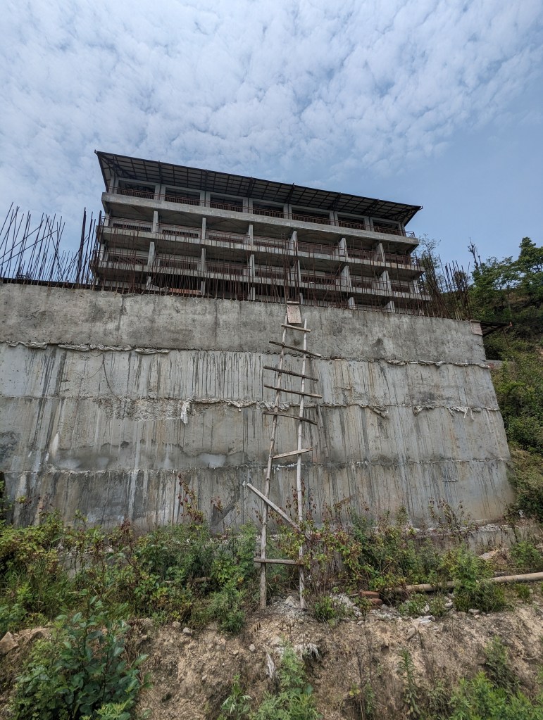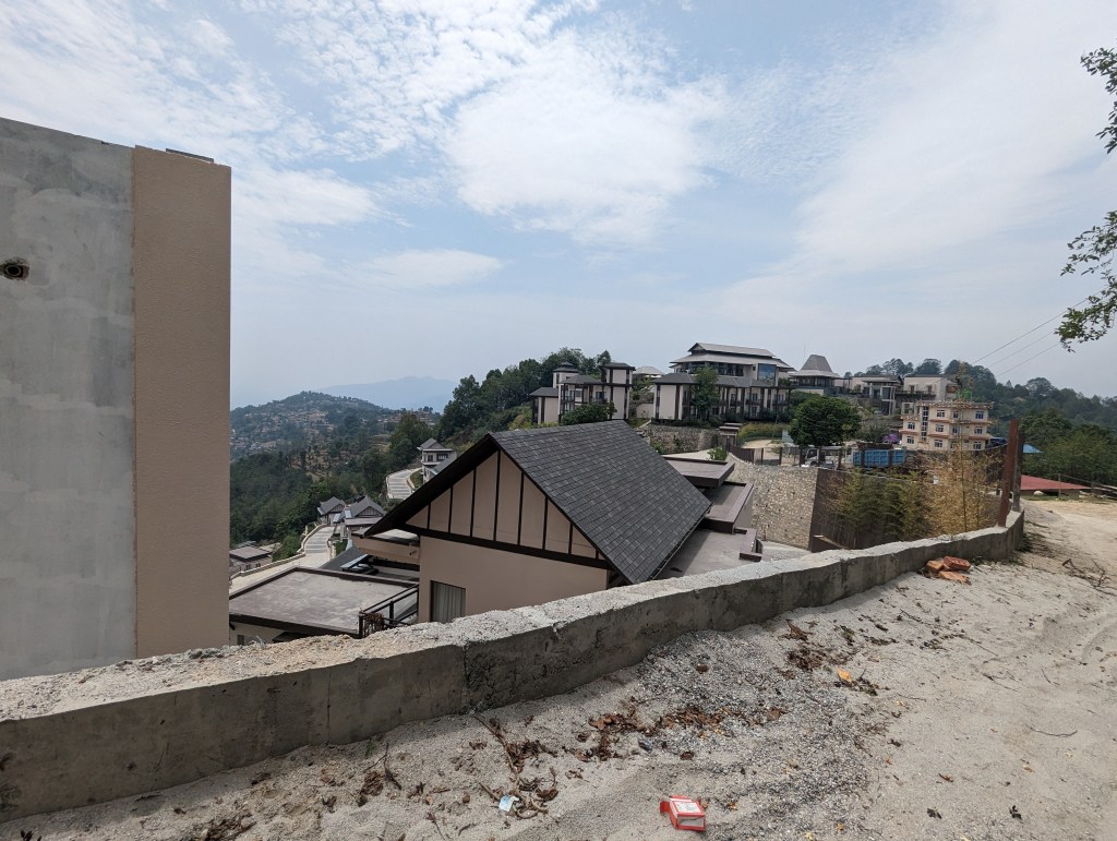 At one point we passed a huge hotel complex being built on the hillside, and on several other occasions passed other hotels which looked to be in various states of completion before they were abandoned. The hillside along which we were walking boasted views of the Himalayas north of Kathmandu, but it remained resolutely too hazy for us to see them. The hotels were clearly banking on the views as their selling point, but it seemed that most had run out of money before they could get up and running.