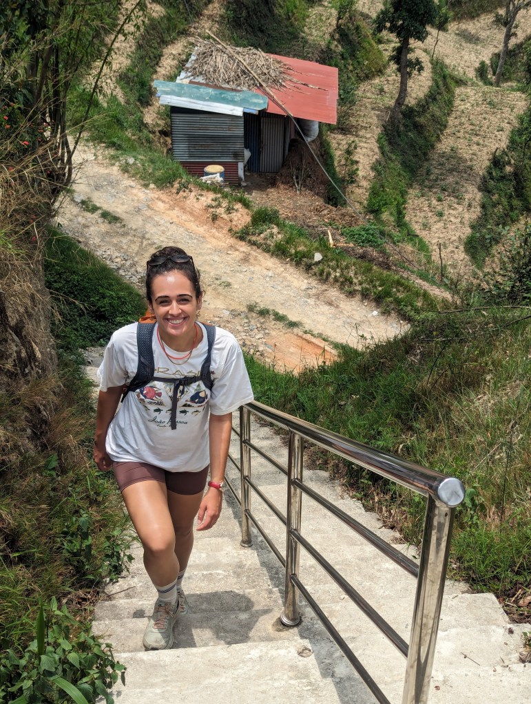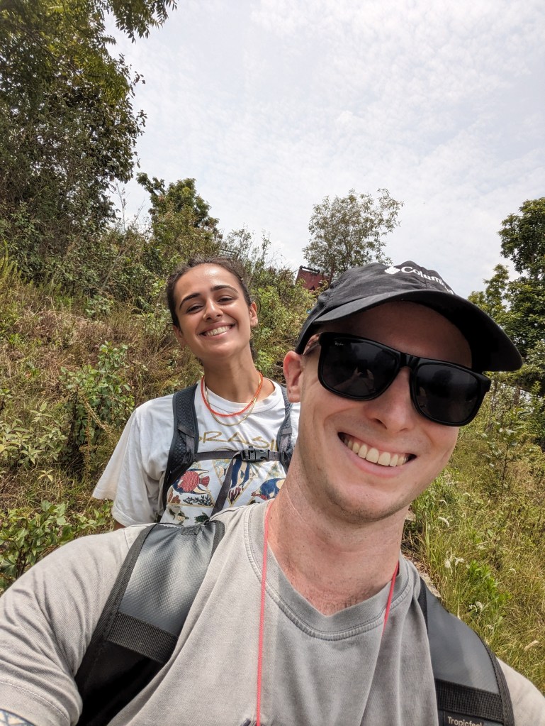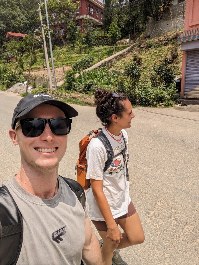 When we woke in Namaste guesthouse, the storm of the previous night had passed and it was a beautiful blue morning sky. We ordered our breakfast from Prem – I (Rob) obviously opting for the large option including eggs, potatoes, buffalo sausage, and tomatoes – who brought it up to our room along with a mugful of sweet tea each. Once we had eaten, we packed up and said our goodbyes to Prem and Ian, and to what had been an unexpected highlight of the trip.