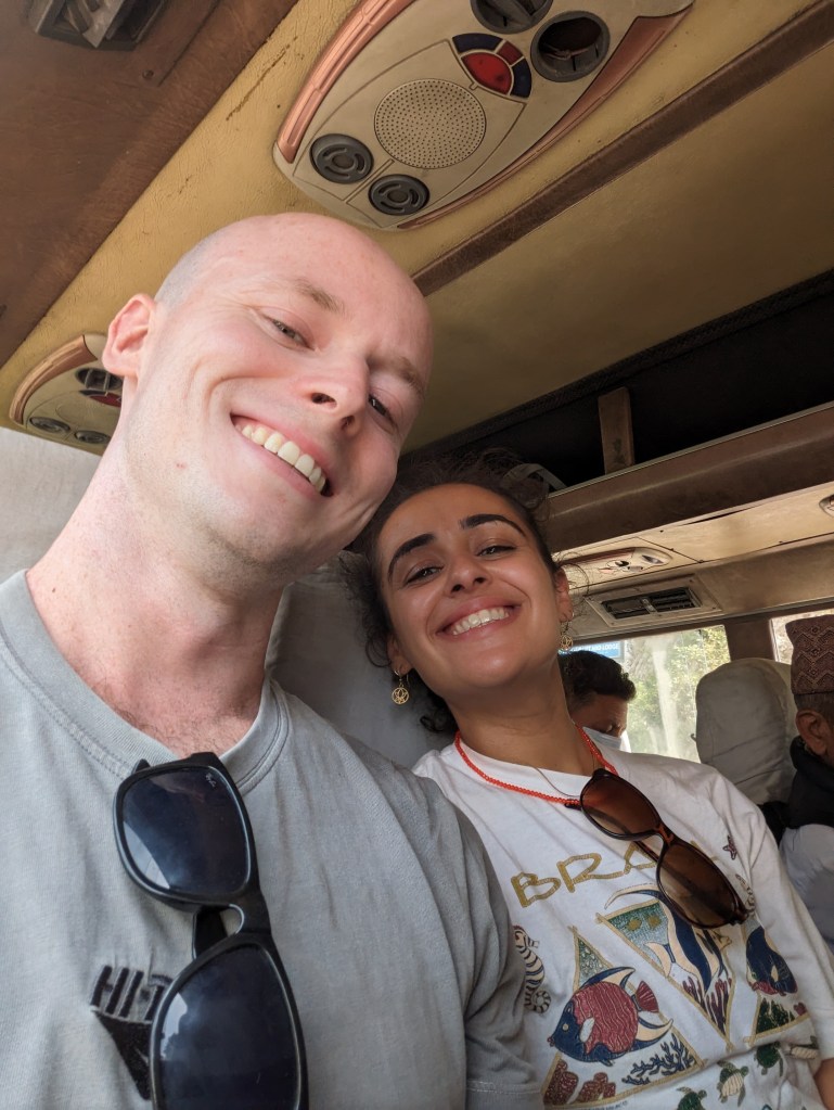 The bus was hot and the sweaty leather seats were tiny, but we sat together and, when the bus was moving and the windows open, the ride wasn’t too bad. The driver and the conductor, who hung out of the open door, communicated through a series of clicks, whistles and slaps on the side of the bus which was fascinating to watch. We crawled for a couple of hours through the traffic of Kathmandu until we were close enough to the hotel to disembark (which meant practically jumping out of the moving bus) and find a taxi to take us home.