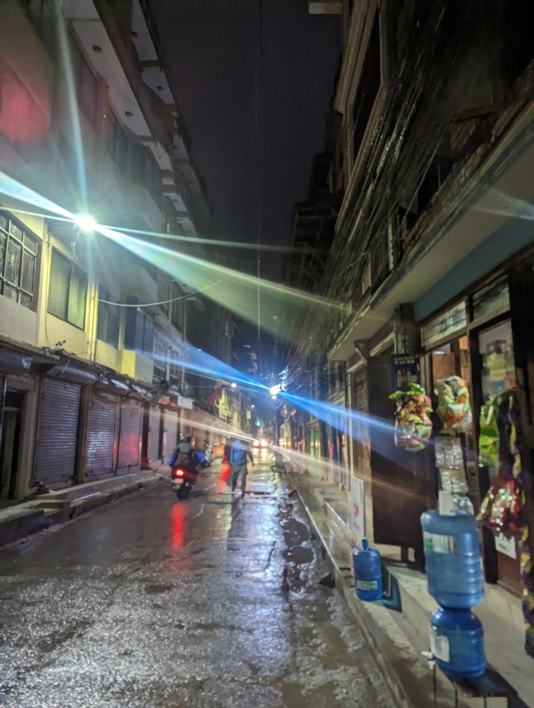 As we’ve said previously, the novelty of going out for a meal has worn off a little from three months of doing nothing but, so we have been relying a little more on food delivery especially since we had a dining table to eat at in New Chen. We ordered in some tacos and sat on the floor eating them before settling in for one of our titanic games of chess. I had spent about thirty seconds Googling chess strategy, from which I came away with the mantra “control the centre of the board”. I had no idea what this meant, but charged out anyway with my knights and rooks only for them to be cruelly and summarily taken from me by a more considered and, dare I say, heartless offensive by Ellie. After a couple of hours of valiant and, at times, desperate defence by a lone rook and queen, my king was cornered and the game was up. This leaves the games table for the trip at Ellie 7 (1 game of rummy, 3 games of cribbage, 2 games of chess, 1 game of pool), Rob 0. By the time we had finished it was getting late, and we headed off to bed for our last night in Patan.