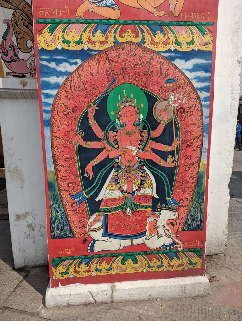 On Saturday morning we were still feeling like taking it easy. We had a slow breakfast at the hotel watching the little birds in the courtyard, and picked up our reliably delicious 20p street sel roti with a coffee. Back in the room we both did some yoga and caught up on admin from the couple of days without much internet etc. After revisiting an earlier find of Foodmandu delivered falafel wraps for lunch, we got a taxi to a painting studio we had read about online.