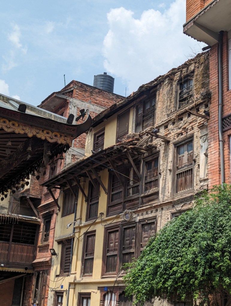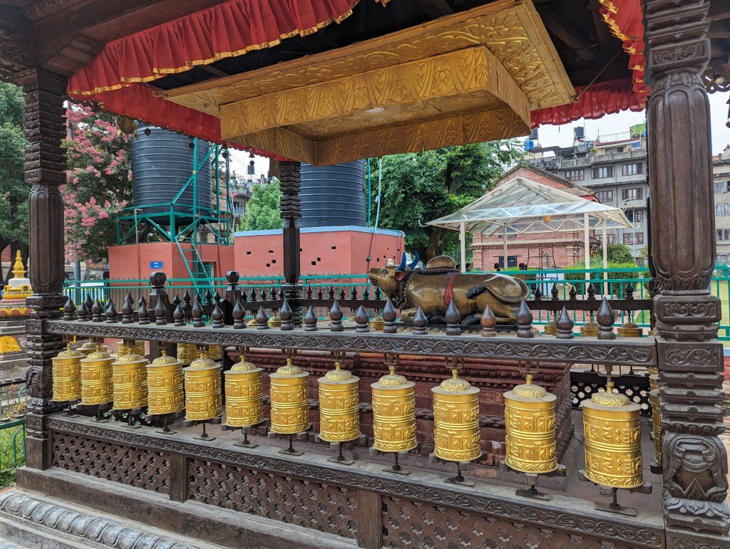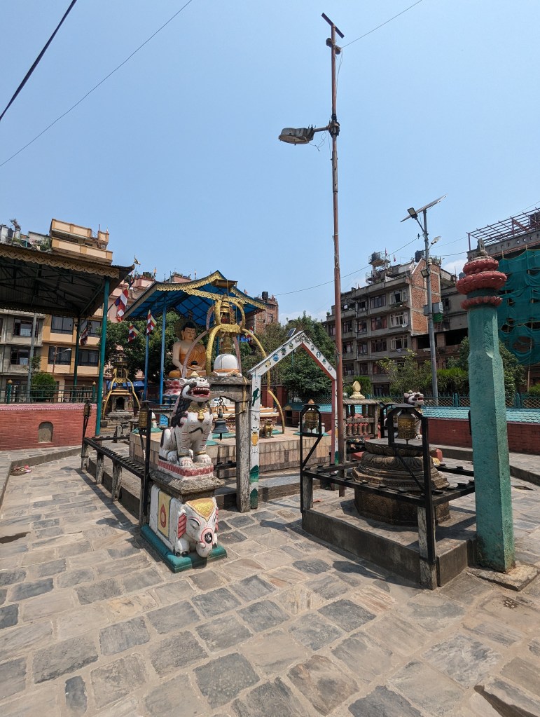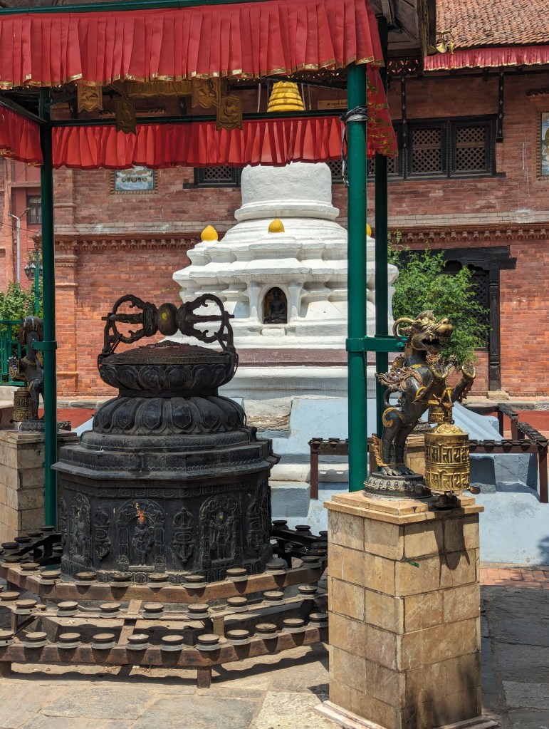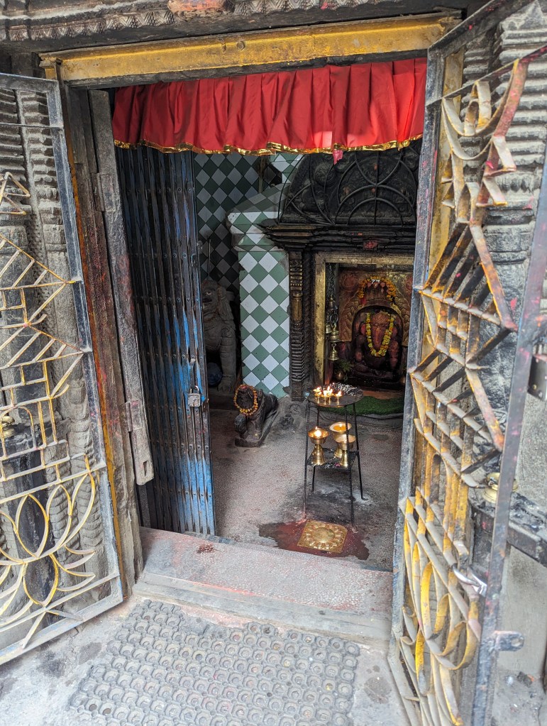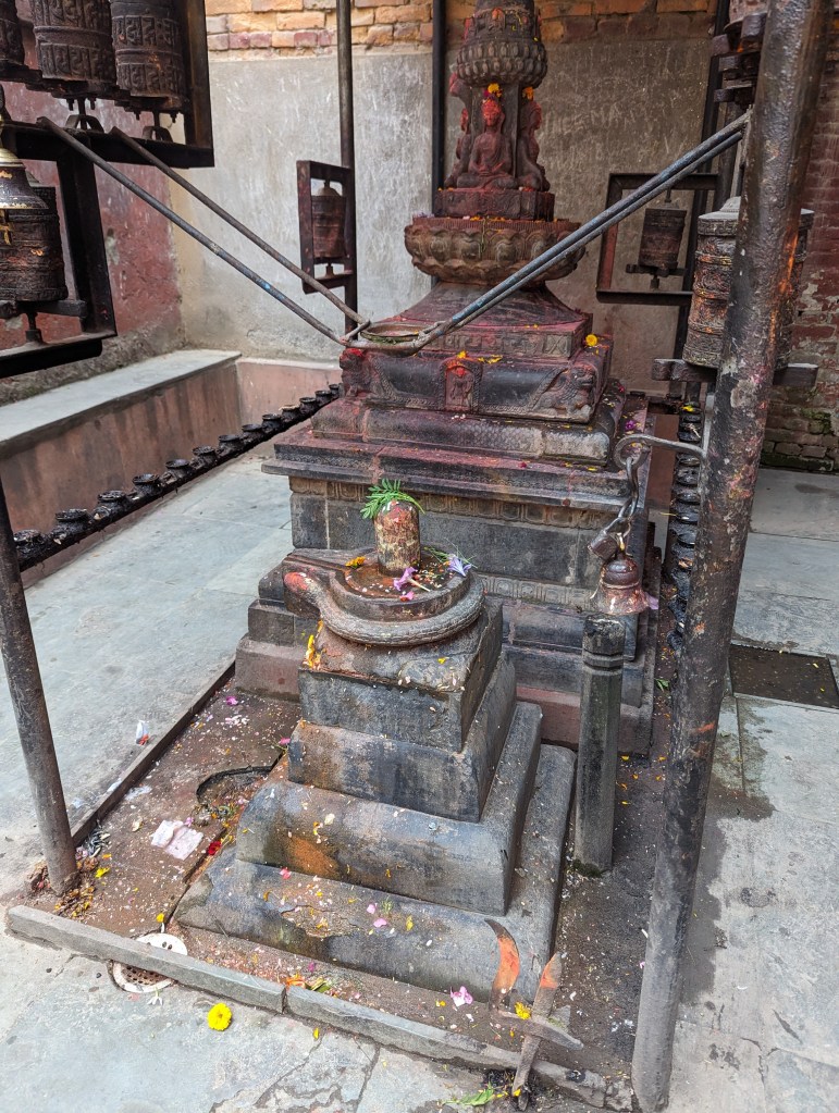 We had the north Patan walk from our guidebook scheduled for the morning, and I led us around the neighbourhood to see yet more beautiful little temples, shrines, and rickety old backstreets and hidden courtyards. The walk started at the colourfully painted city gate, then took us past a variety of Hindu shrines and into a small courtyard with a large Buddha statue. From there, we passed a number of small stupas and sunken water tanks, before circling back round to the larger temples near our hotel. There were probably some interesting facts about a few of these mentioned in the walking instructions, but we’ve seen so many temples lately it’s hard to remember what was what!