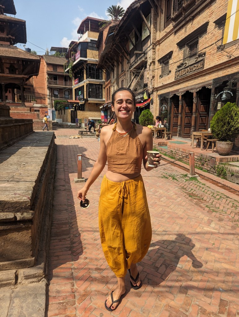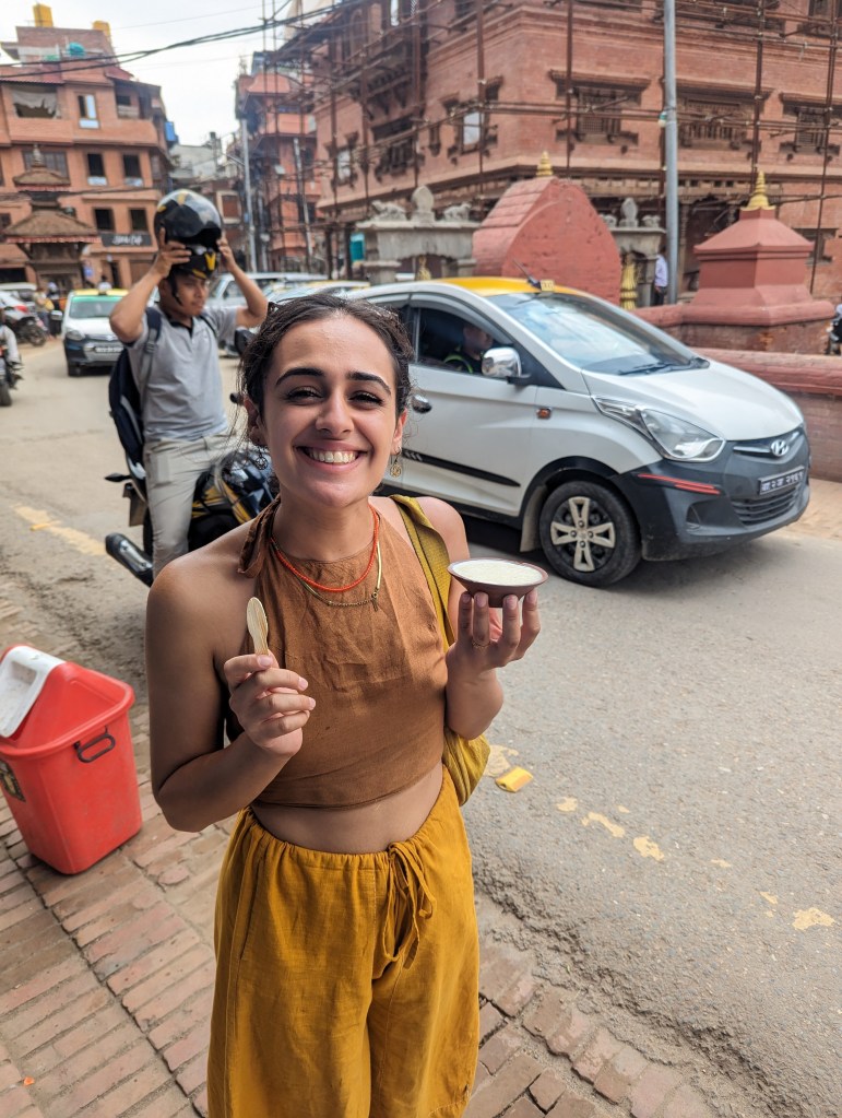 We were at the wrong end of Thimi by this point for the bus, and so took a quick taxi journey back to Bhaktapur. Before getting back to the hotel, however, we stopped for a juju dhau which made an excellent, light dessert. It was mid afternoon by this point, and we spent the next few hours in the hotel – doing some yoga, reading, and generally relaxing. Before we knew it, it was getting into the evening and time for us to find something for dinner.