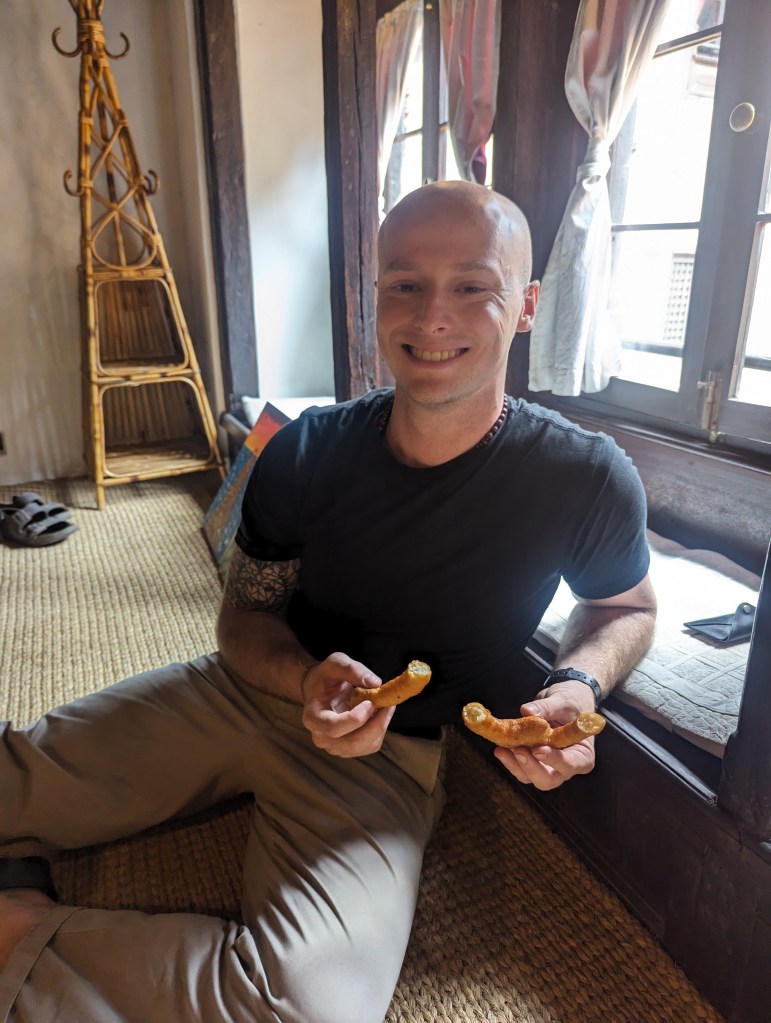 Wednesday morning started with our breakfast at Shiva Guest House, having been informed after breakfast on Monday that this would be included in the price of our room as an ‘off season bonus’. As is emerging into a theme, Rob went for a repeat of the reliable fried eggs and potatoes whereas I mistakenly tried for something less fried and came out with a bowl of warm milk with a tiny sprinkling of oats. Rob did gift me a slice of toast with the delicious marmalade though had which made this mostly better.