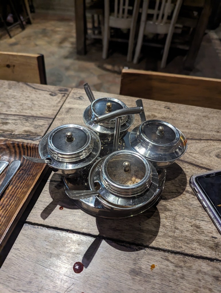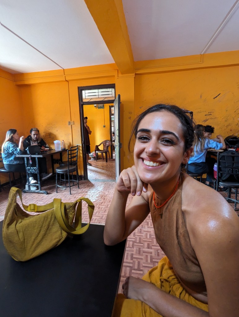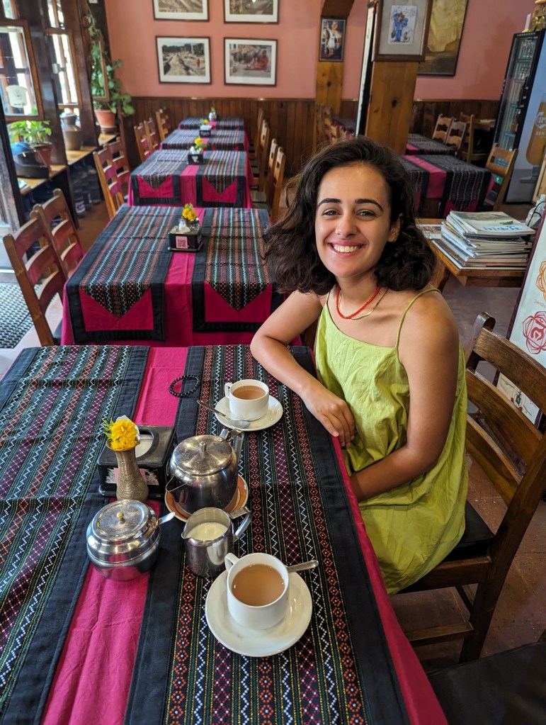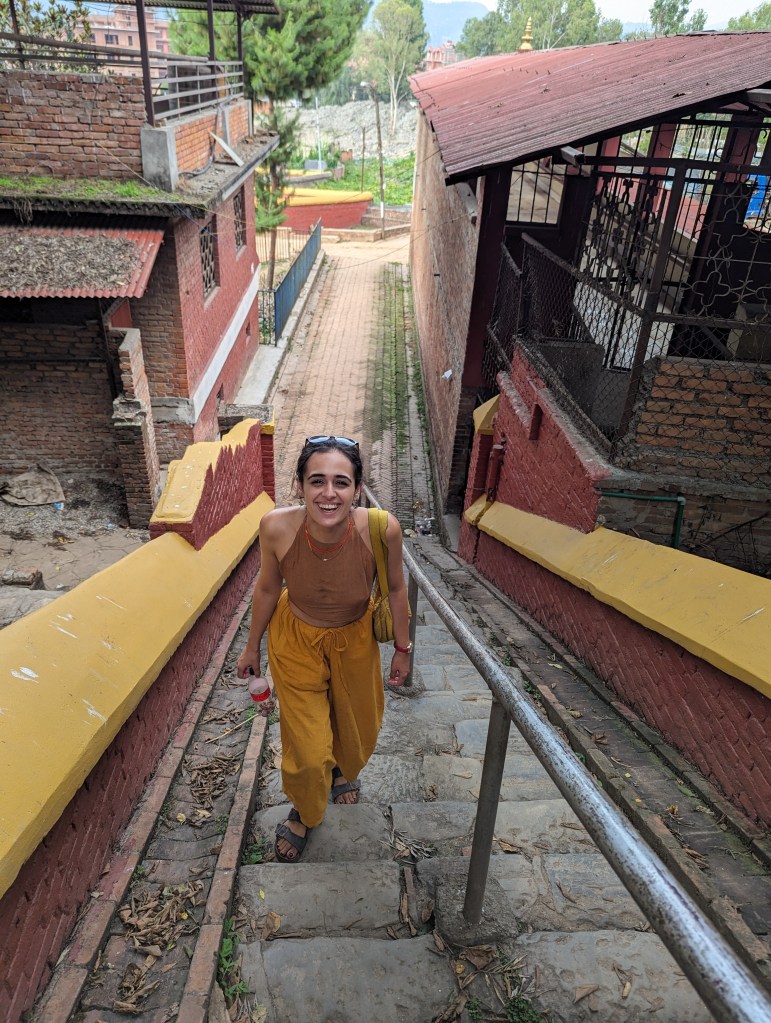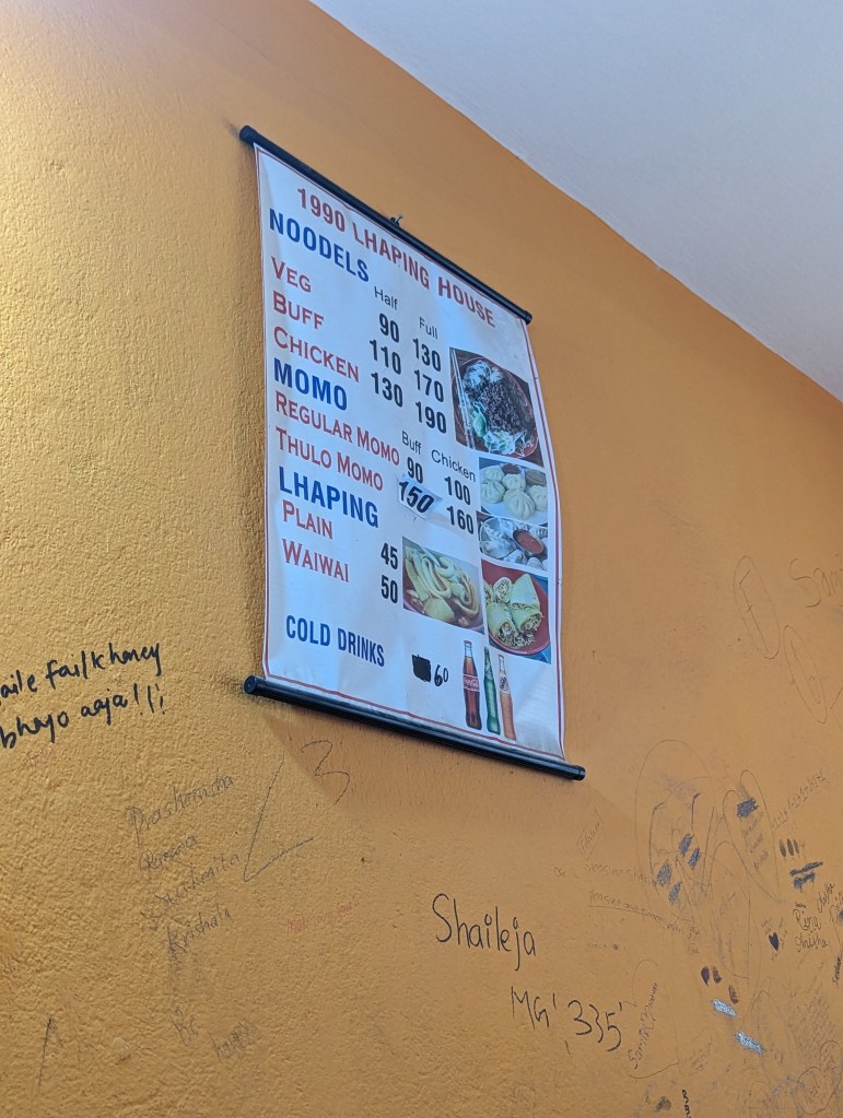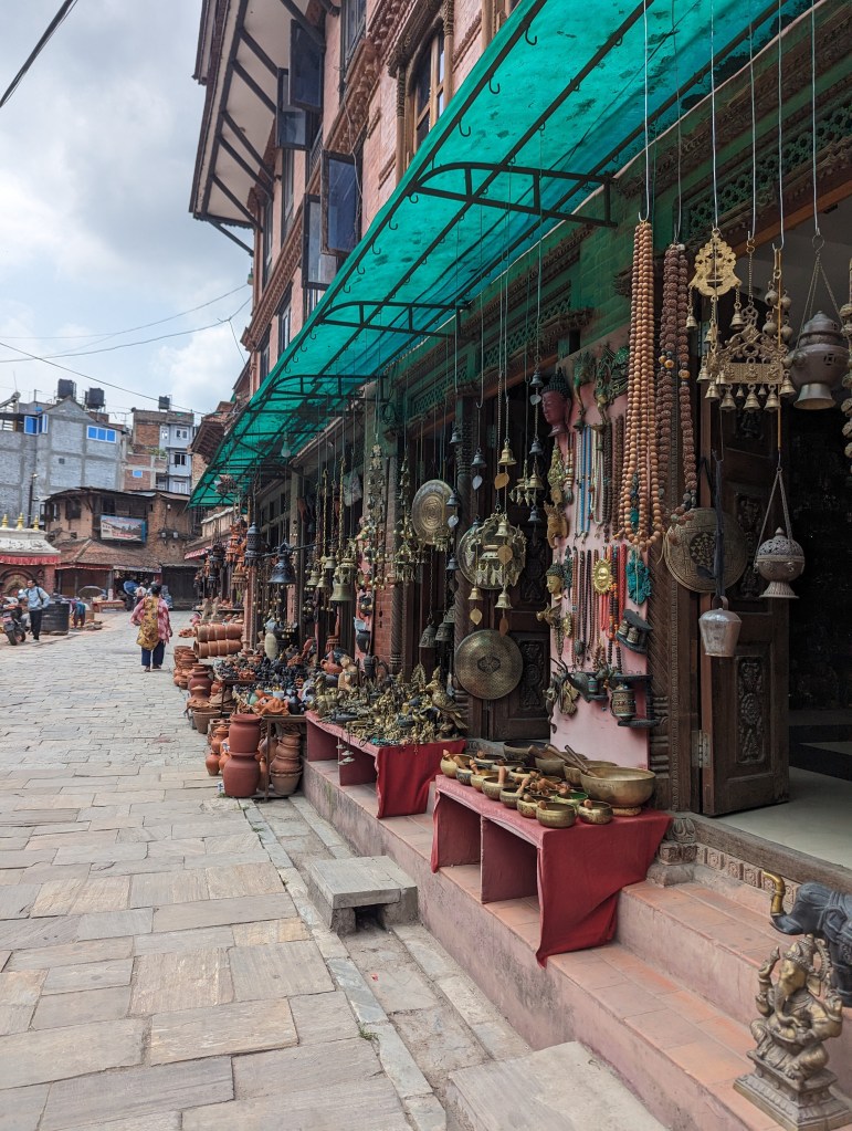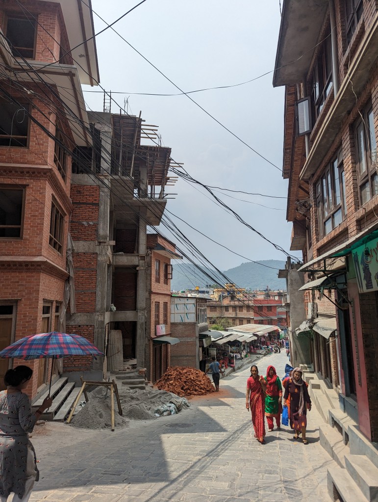 The pottery shop was lovely (and mercifully dry), and I somehow convinced Ellie that we would have space to carry a yellow teapot home with us in our hand luggage. Armed with the teapot, we headed back out onto the streets and to a local place for lunch. The cafe was the Nepali equivalent to the locals’ cafeterias we had sometimes been to in India, and we were served our momos and chow mein by a team of very young, industrious waiters captained by someone who could have been their father or their manager (or, probably, both).