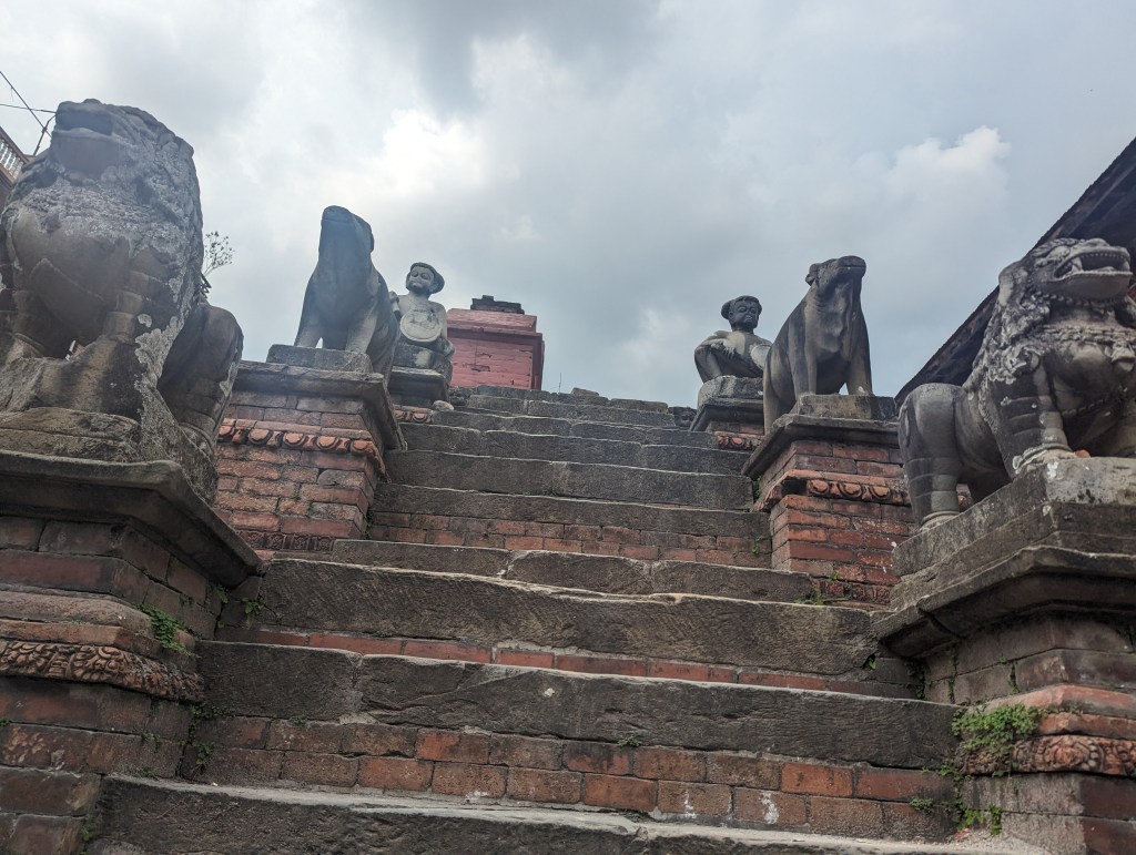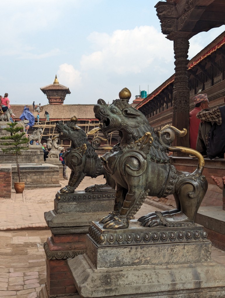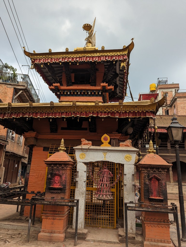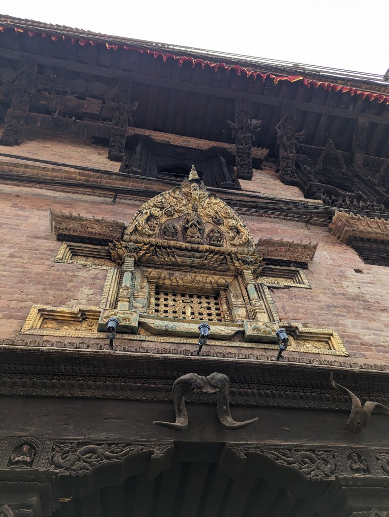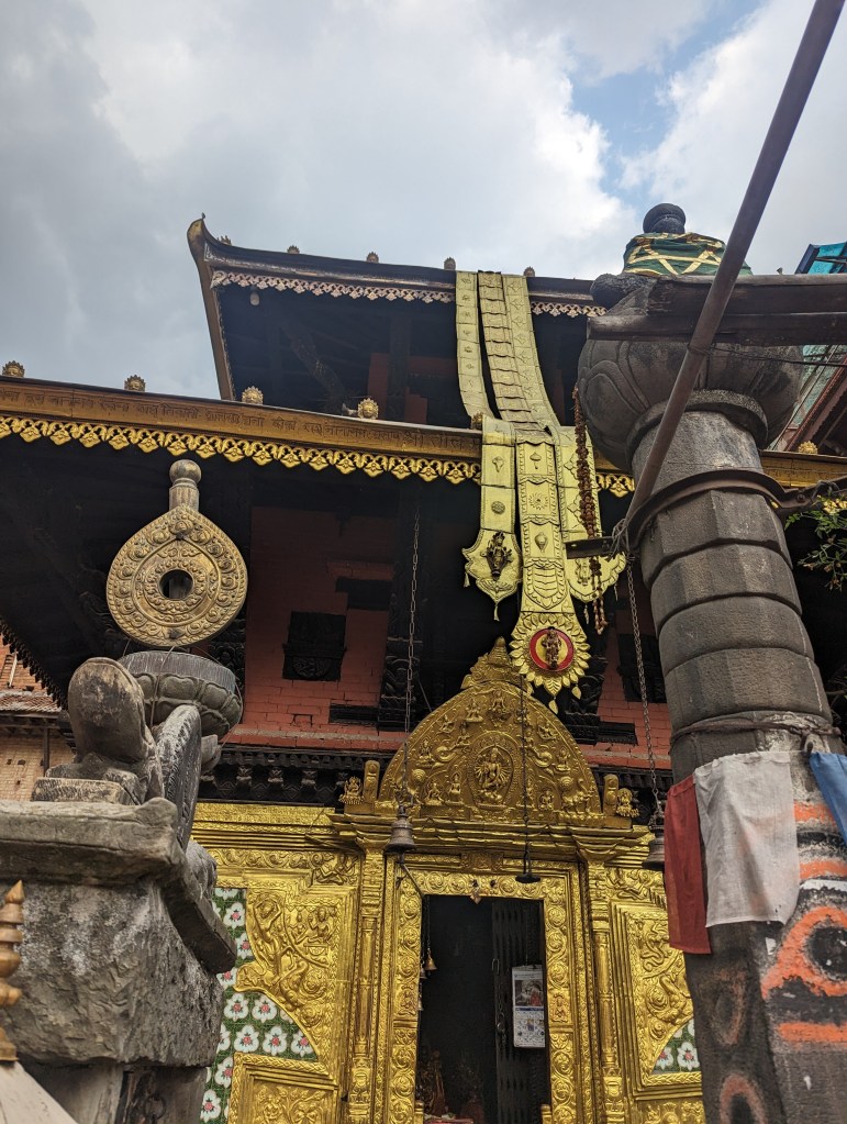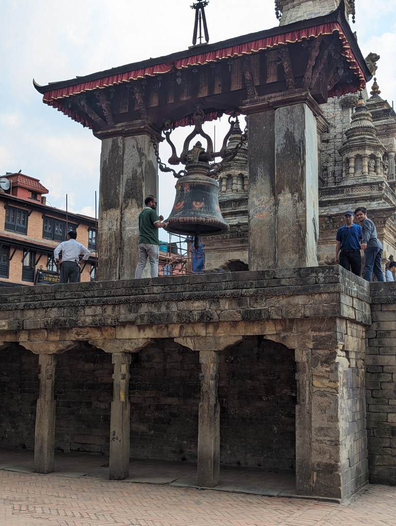 From the Kali temple we entered the Durbar Square proper, and took a turn around to see the impressive temples and statues scattered throughout the large, busy plaza. Much like Patan Durbar square, it had been largely built during the reign of the Malla Kings, and had sustained much damage during the 2015 earthquake. But, also like Patan Durbar square, it had largely been rebuilt. The square had temples to all the major Hindu deities, as well as impressively large lion statues guarding the temple gates, and a giant bell which was apparently rung by any townsfolk that had grievances to air with the king.