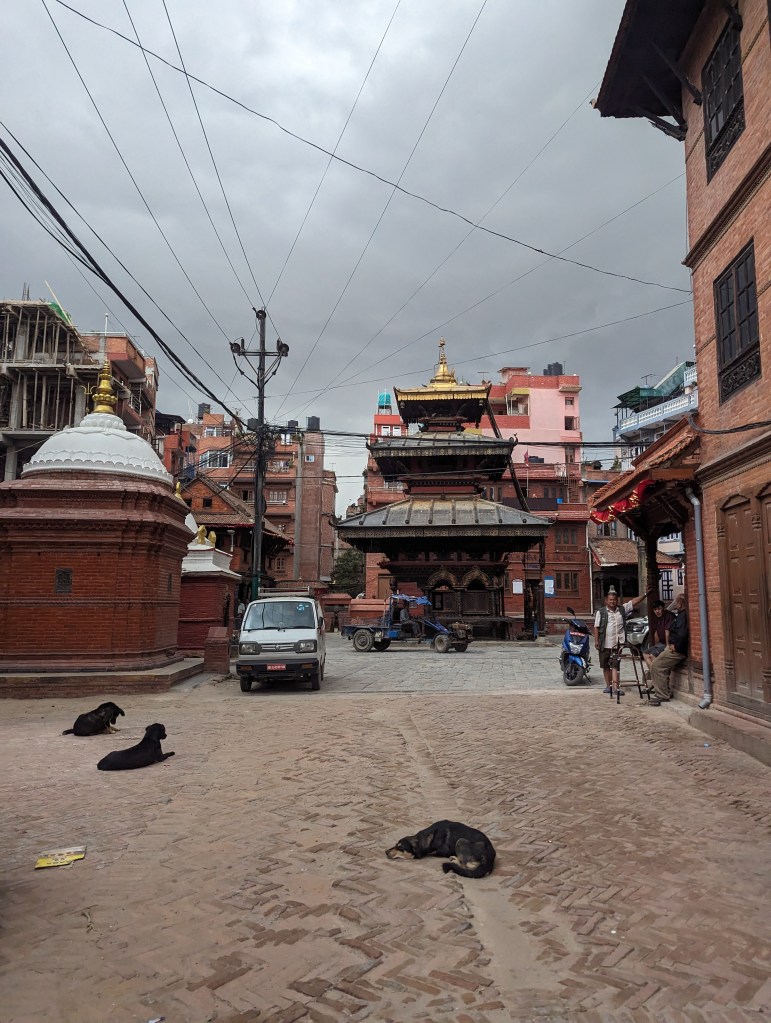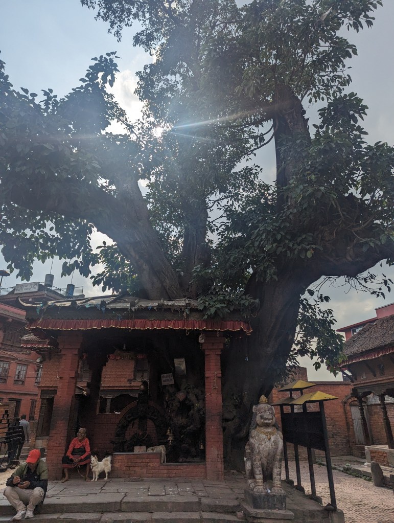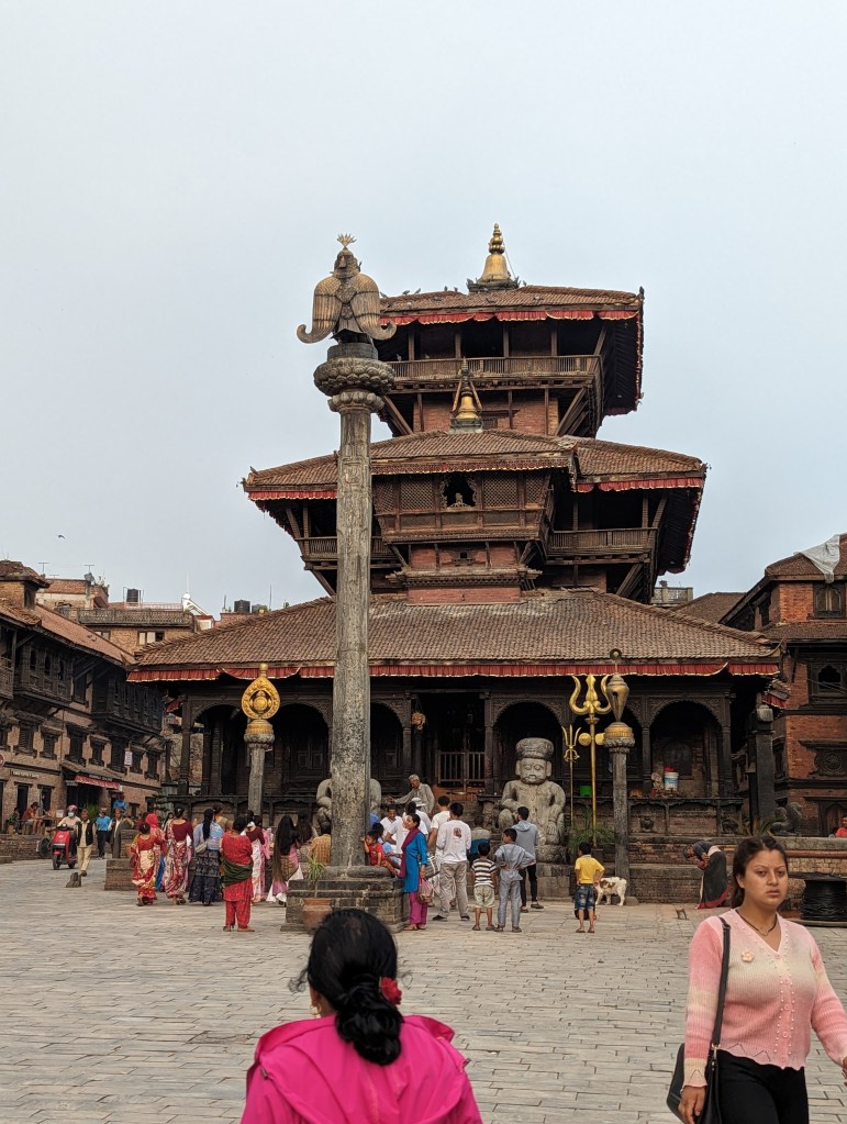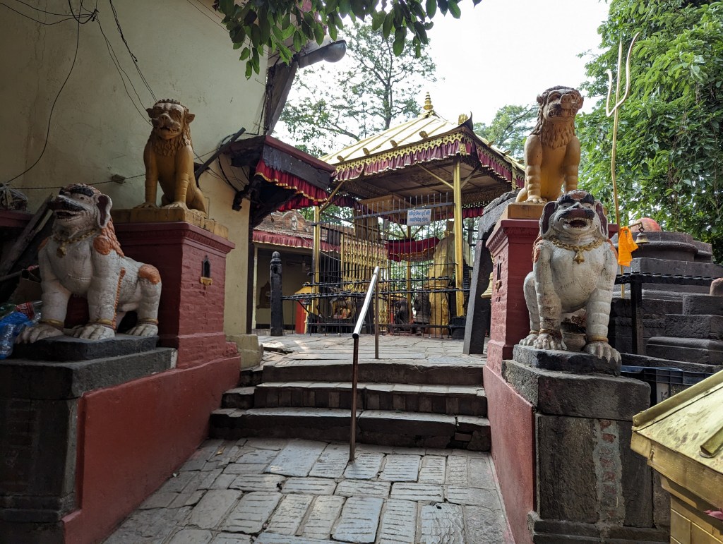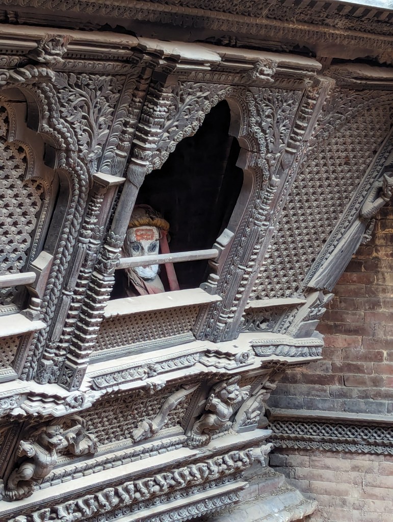 From the Kali temple we entered the Durbar Square proper, and took a turn around to see the impressive temples and statues scattered throughout the large, busy plaza. Much like Patan Durbar square, it had been largely built during the reign of the Malla Kings, and had sustained much damage during the 2015 earthquake. But, also like Patan Durbar square, it had largely been rebuilt. The square had temples to all the major Hindu deities, as well as impressively large lion statues guarding the temple gates, and a giant bell which was apparently rung by any townsfolk that had grievances to air with the king.