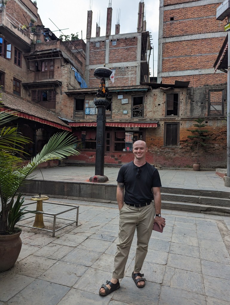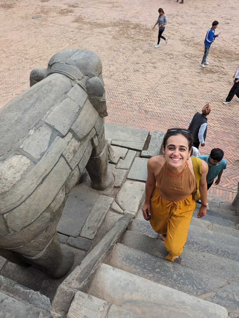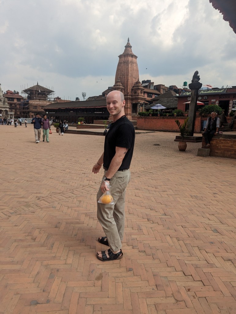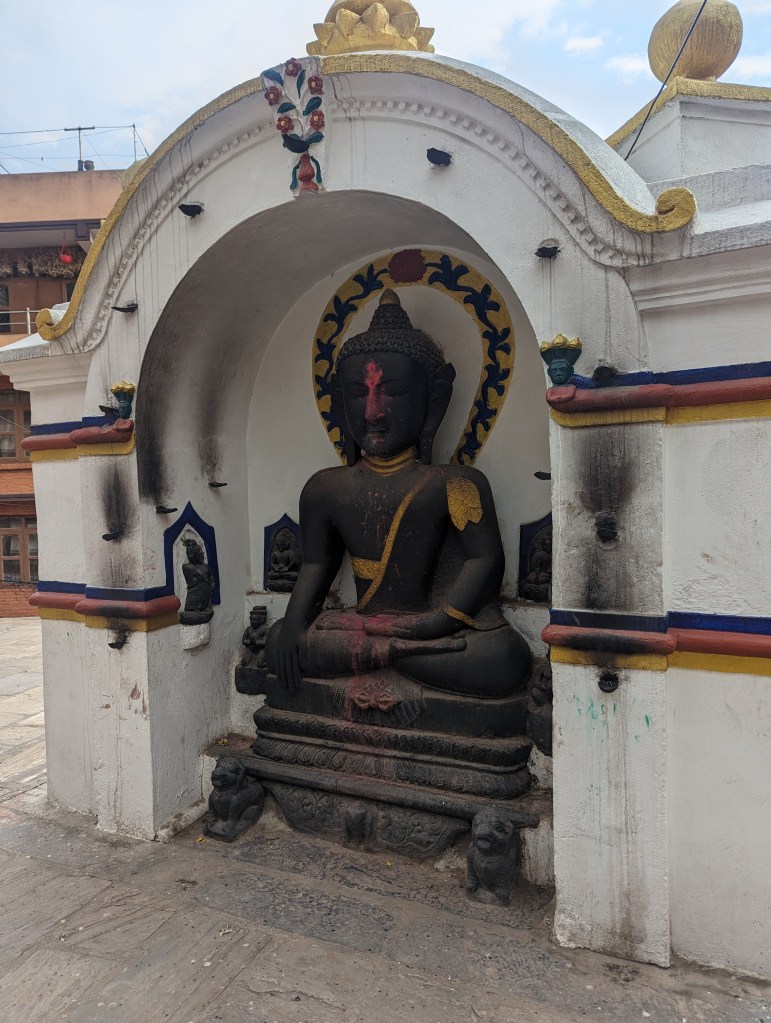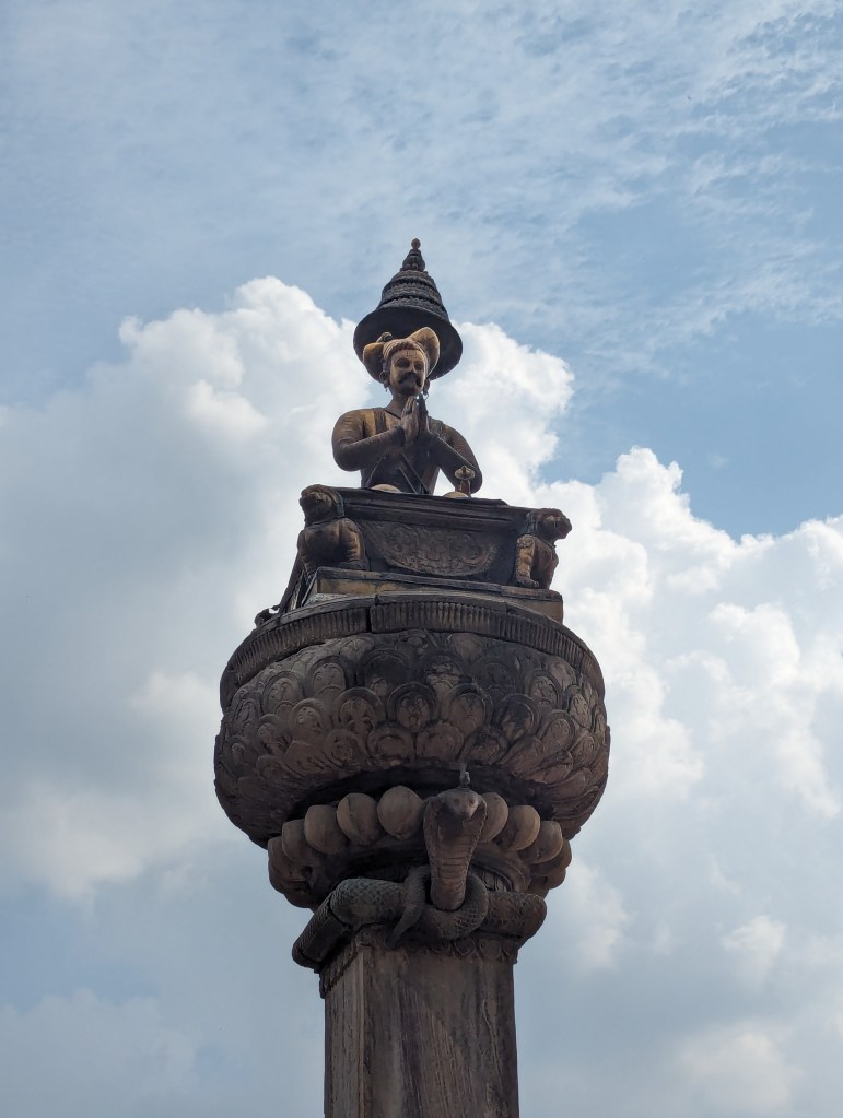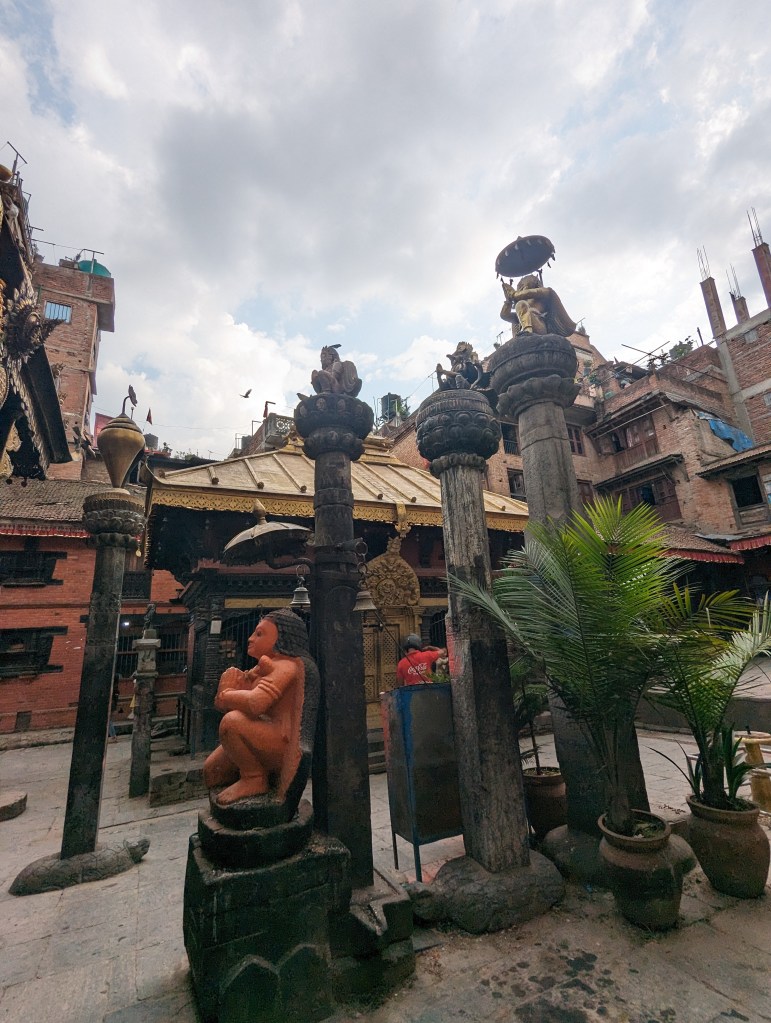 From the Kali temple we entered the Durbar Square proper, and took a turn around to see the impressive temples and statues scattered throughout the large, busy plaza. Much like Patan Durbar square, it had been largely built during the reign of the Malla Kings, and had sustained much damage during the 2015 earthquake. But, also like Patan Durbar square, it had largely been rebuilt. The square had temples to all the major Hindu deities, as well as impressively large lion statues guarding the temple gates, and a giant bell which was apparently rung by any townsfolk that had grievances to air with the king.