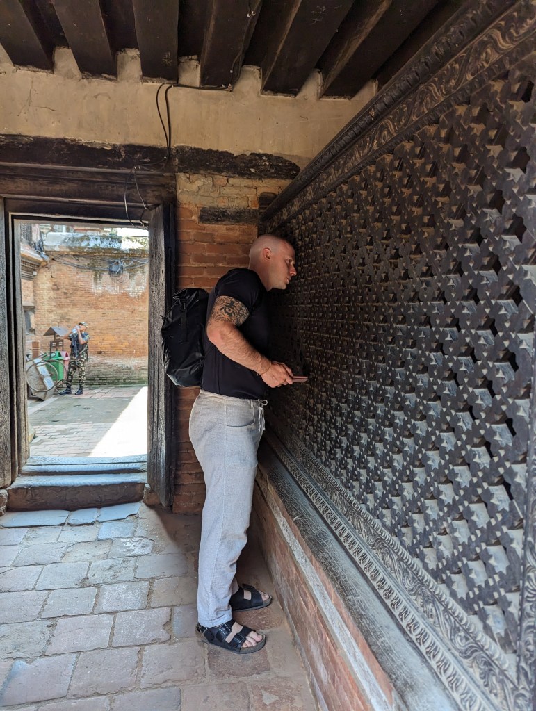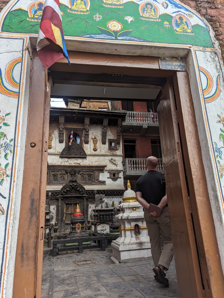 Kathmandu has a good Uber type service, and it was quick and cheap to find a cab to take us to Bhaktapur, which was about a thirty minute drive away. Whilst in the taxi, I received several panicked whatsapp messages from the Newa Chen staff to alert me I still had the room key in my pocket. Apparently they didn’t have a replacement (though it was only for a little padlock that would have come off with a pair of bolt cutters very easily), and kept saying things like “we are very worried”. Fortunately, the taxi app also had a courier service so when we reached Bhaktapur I was able to courier the keys back to Newa Chen for the equivalent of a couple of pounds. This was not the first, and has not been the last, time I have left the hotel with the key in my pocket (fourth time and counting).