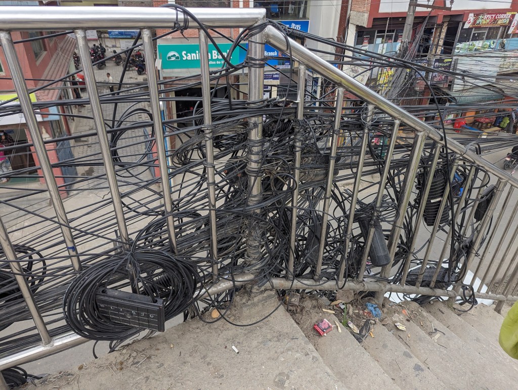 The plan was to catch the bus down the main road to the next district, Thimi, which was apparently very picturesque and had an excellent pottery scene. The bus was easy enough to find, and cost us a few pence to get the 15 minutes or so down the road. By the time we’d disembarked the wind had picked up in the way it does before a storm, and the skies were darkening by the second. We crossed the footbridge over the road (which was covered in electrical cabling, so we were glad to be off it before the rain started) and tried to make it to the pottery shop we’d been recommended before the heavens opened.