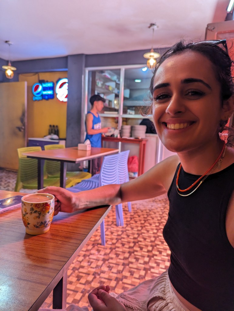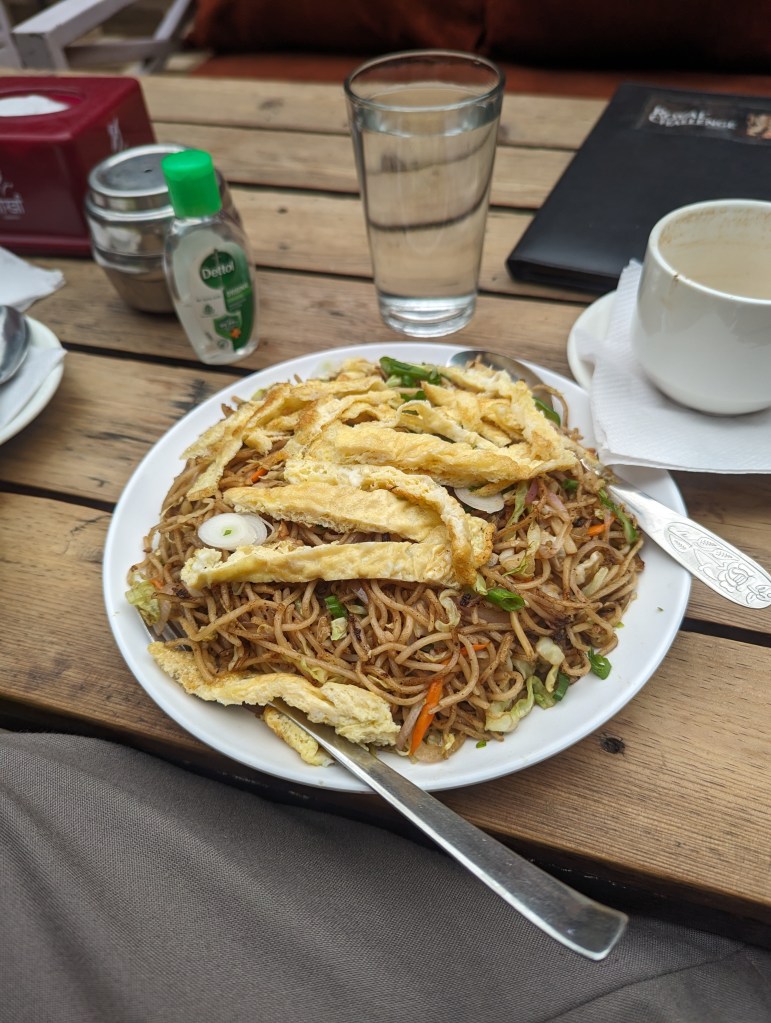 A bit sad but determined not to part with tourist amounts of cash for a disappointing sandwich at one of the Western style cafes, we hunted down another local place for some noodles. The man was very nice and once again the kitchen was staffed with 12 or 13 year old boys, but we received another tasty and simple egg chow mein with sweet authentic masala chai for around £2 total between us.