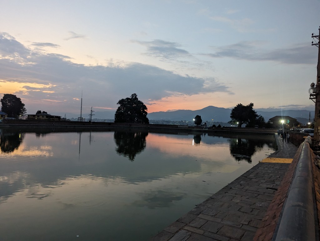 Refuelled and done with museums for the day, we went back to our hotel room for some yoga and reading for the afternoon. As twilight fell we planned to loop around the 2 largest ‘tanks’ – similar to the one near the pizzeria – to see local life happening around them in the early evening. One of them was largely walled off and not very interesting, but another had a small temple right in the middle which you could walk up to on a small path. There were plenty of locals of all ages sitting by the water, walking dogs or having quite professional looking photo shoots against the sunset-reflecting water.