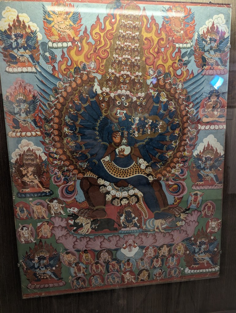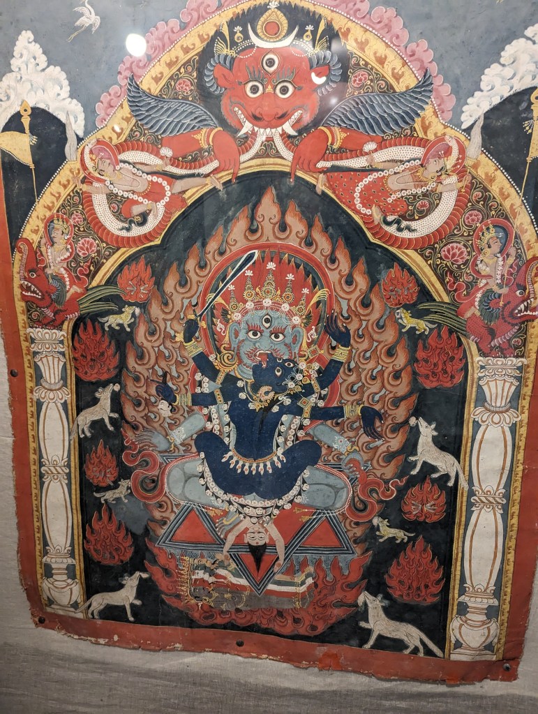 We popped back in to our Bhaktapur coffee-stop for some decent espresso coffees and then practically next door the the Art Museum. This was largely a classic case of not-at-all curated items with copy-pasted information that often bore little relevance to the item it was next to. It did however contain a wealth of Tantric paintings which we studiously hunted down as we’ve become accustomed to a childish and hugely inappropriate giggle at the religious smut. One thing we can be sure of from the details is that ALL of these paintings were done by men, some of whom it seems had little real life experience of the matters depicted.