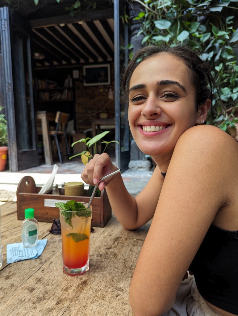 Unable to find any decent looking restaurants nearby, we then walked down the biggest road in Bhaktapur to reach a Korean place I’d seen well reviewed. For some reason, despite it being a Wednesday, the streets and squares were incredibly busy – whole families sitting out with ice creams, and lots of young people out drinking. We’re still not sure if there was a holiday or something, or whether this is just the vibe in Bhaktapur, but it was definitely nice to see groups of young women or mixed gendered groups of young people out together in the evening – not a sight you’d see in India.