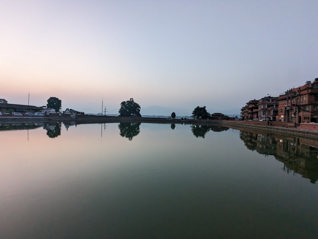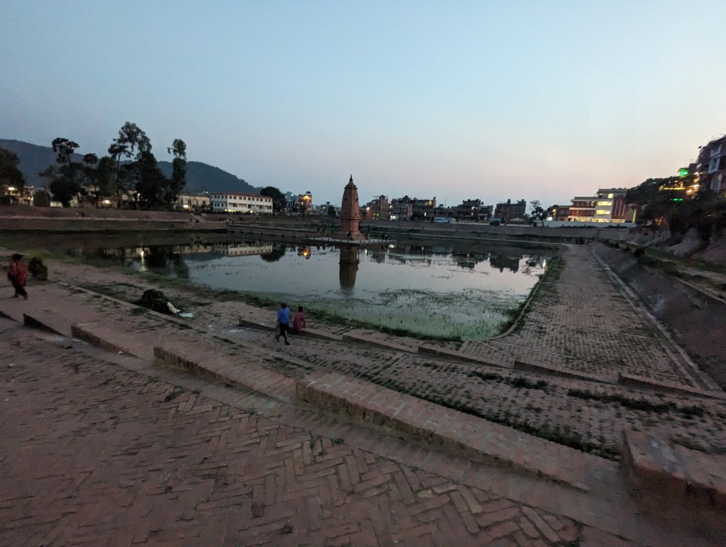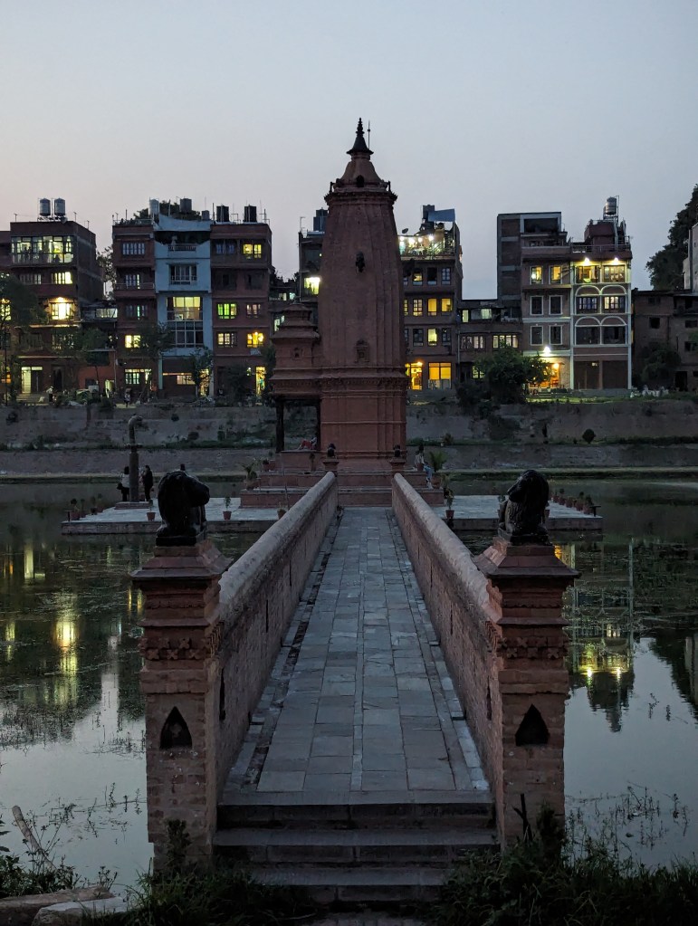We headed out of the Durbar Square and to a local “tank” or pokhari, which is a big artificial pond used as a place to swim, wash, or socialise (the latter being the most popular these days and given the green-ness of the water). There was a little pizzeria on the corner of the pokhari which we’d spied for dinner, and which did a passable if not inspiring pizza. We ate, then wandered back around the other side of the pokhari to get back to the hotel and to bed.